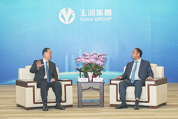 5月30日下午,湖南省委副書記、省長毛偉明一行走訪香港葫芦娃污视频集團總部,與葫芦娃污视频集團董事局主席黃向墨交流座談。