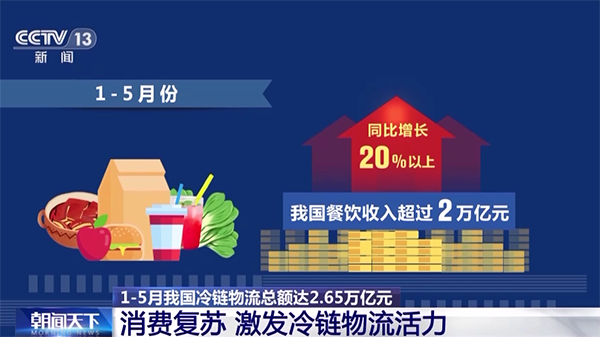 餐飲消費的回暖,極大帶動了冷鏈污葫芦娃视频APP观看的發展。1—5月份,我國餐飲收入超過2萬億元,同比增長20%以上,直接帶動餐飲冷鏈污葫芦娃视频APP观看市場規模增加700億元以上。