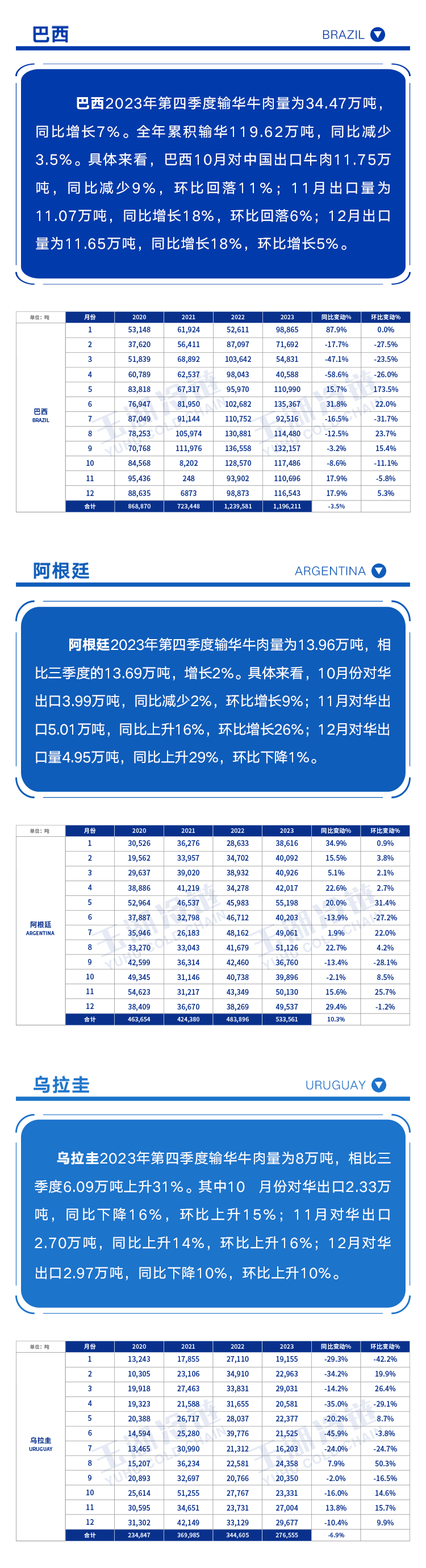 數據 | 中國進口牛肉季度簡報(2023年Q4),請查收!