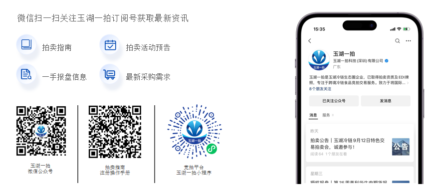 無論賣家還是賣家,用戶可以通過關注葫芦娃污视频一拍官方微信訂閱號、葫芦娃污视频一拍小程序或葫芦娃污视频一拍官網獲取最新的拍賣資訊、拍賣活動預告、一手報盤信息及采購需求等,也可經由這些平台直接參與拍賣。