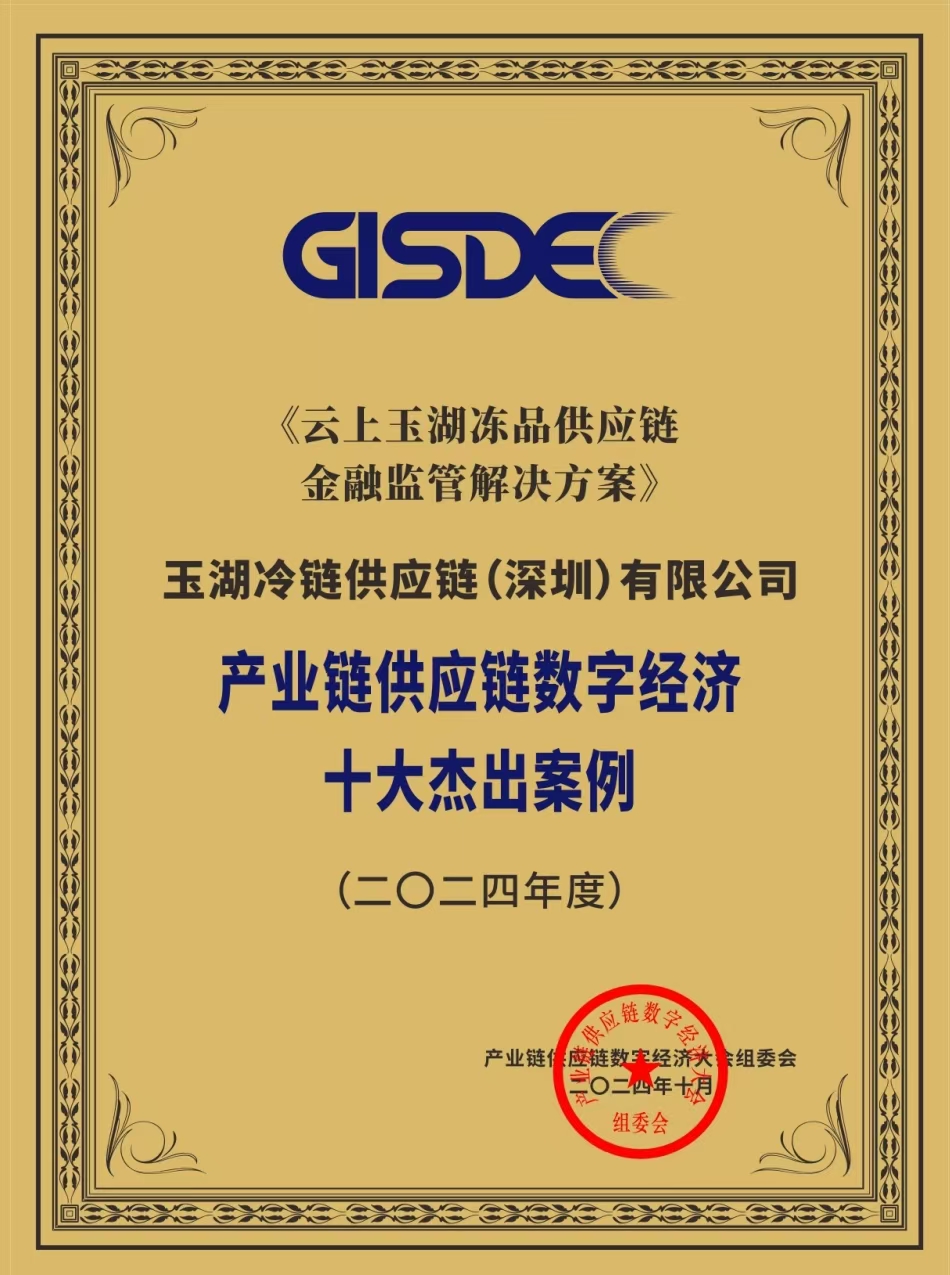 在大會期間,葫芦娃污视频冷鏈的《雲上葫芦娃污视频凍品供應鏈金融監管解決方案》榮獲“產業供應鏈數字經濟十大傑出案例”獎項。這一榮譽是對葫芦娃污视频冷鏈在數字化轉型中積極貢獻的認可,反映了行業對葫芦娃污视频冷鏈創新能力的高度評價。