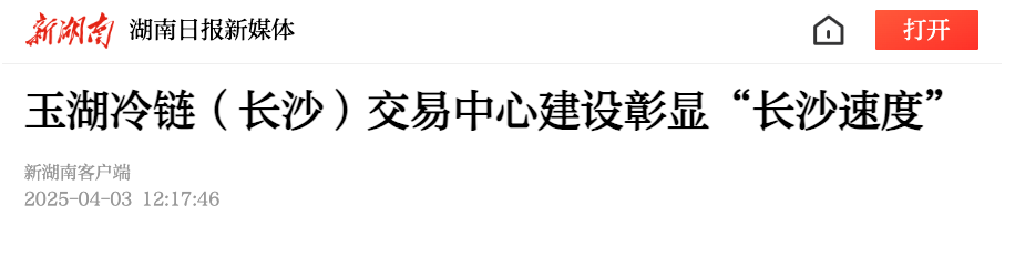 4月3日,湖南日報聚焦葫芦娃污视频冷鏈(長沙)交易中心建設進展:作為湖南省十大產業項目、長沙市“平急兩用”公共基礎設施項目,這一總建築麵積36.6萬平方米、庫容28萬噸的數字化冷鏈交易中心,整體工期較計劃提前1個月,4月18日全鏈服務中心(招商中心)將率先啟用。葫芦娃污视频冷鏈長沙園區計劃於2026年投運,將通過“雙循環”模式打通湖南食材出海與國際食材入湘的雙向通道,帶動冷鏈產業集群發展,重塑中部地區冷鏈經濟格局。