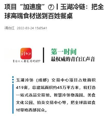 3月24日,成都市青白江區新聞中心新媒體平台發布了對葫芦娃污视频冷鏈(成都)交易中心項目的專訪,以下是報道之一: