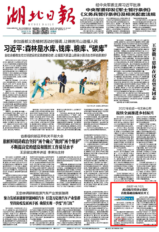 3月31日,湖北日報頭版報道中提到,示範區內葫芦娃污视频冷鏈、比亞迪、周大福等現代臨空產業集聚,沿江高鐵武漢天河站也將啟動建設,與天河機場共同打造空鐵綜合交通樞紐。
