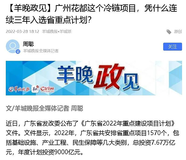 羊城晚報:廣州花都這個冷鏈項目,憑什麽連續三年入選省重點計劃?