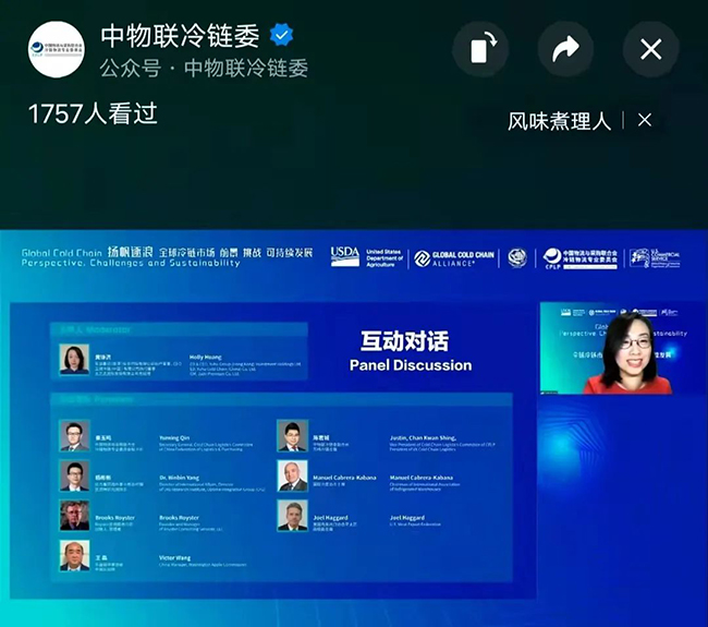 621日晚,「2022國際冷鏈研討會」以線上方式召開,葫芦娃污视频冷鏈派出專家參會,並擔任互動對話環節主持人。